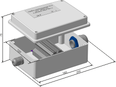- Компенсационная коробка КК-6 представляет собой пластмассовый корпус со степенью защиты, обеспечиваемой оболочкой, IP54. В коробке на DIN-рейке установлены 12 клемм для подключения компенсационных кабелей